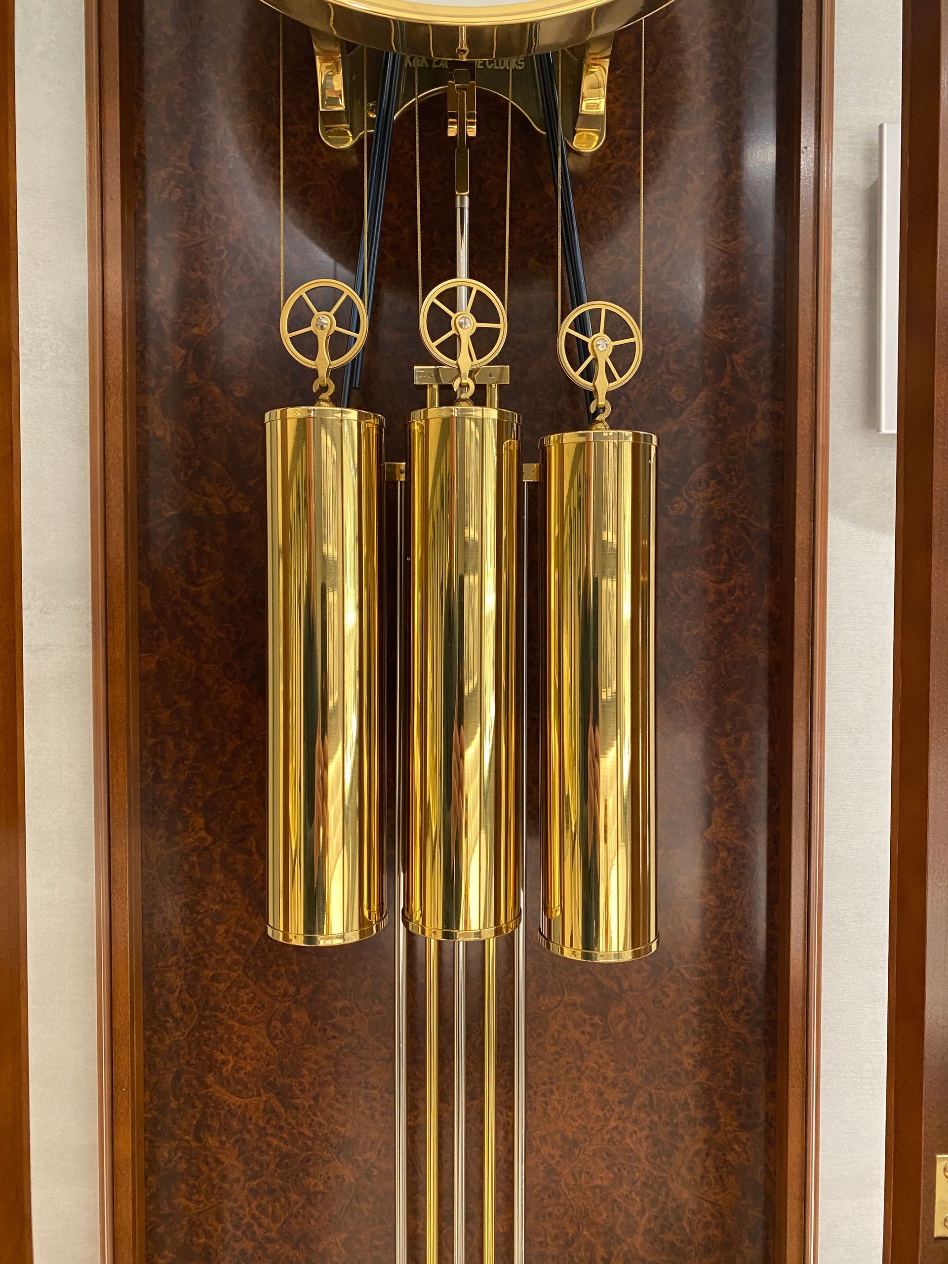 Het hoogglans gepolijste, Kieninger kabeluurwerk heeft 3 gewichten, een Westminster slagwerk en is speciaal gebouwd voor deze gelimiteerde serie.
