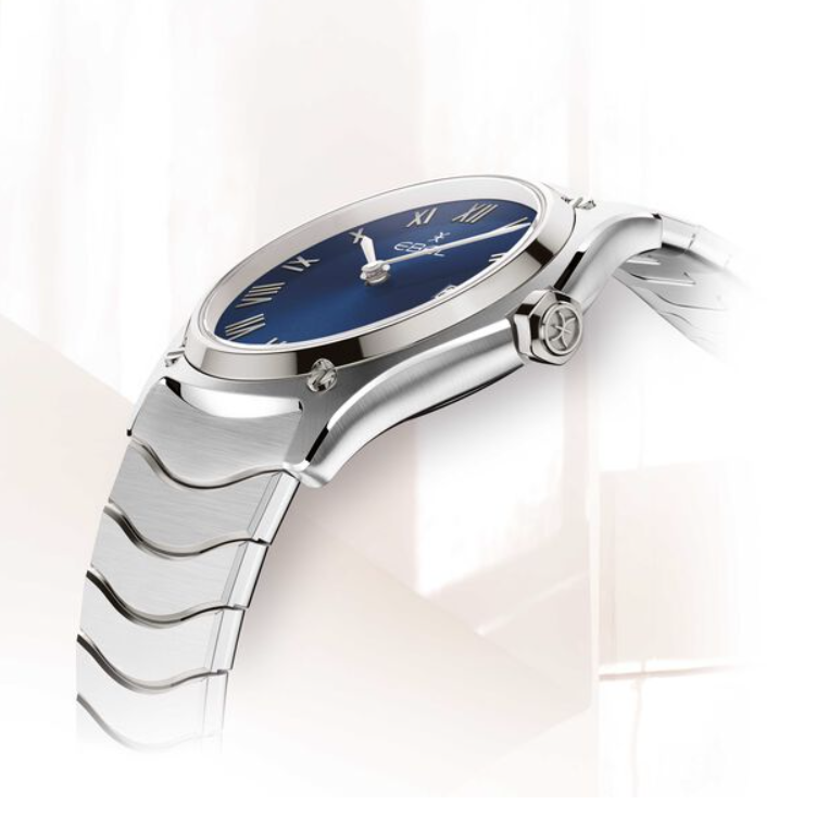 EBEL Sport Classic - 1216420A heren pols horloge. Edelstalen kast . Ø 40 mm. Blauwe wijzerplaat met Romeinse cijfers. Ontspiegeld Saffier glas. Edelstalen Wave band met klap sluiting. Zwitsers quartz uurwerk. 5 ATM waterdicht.