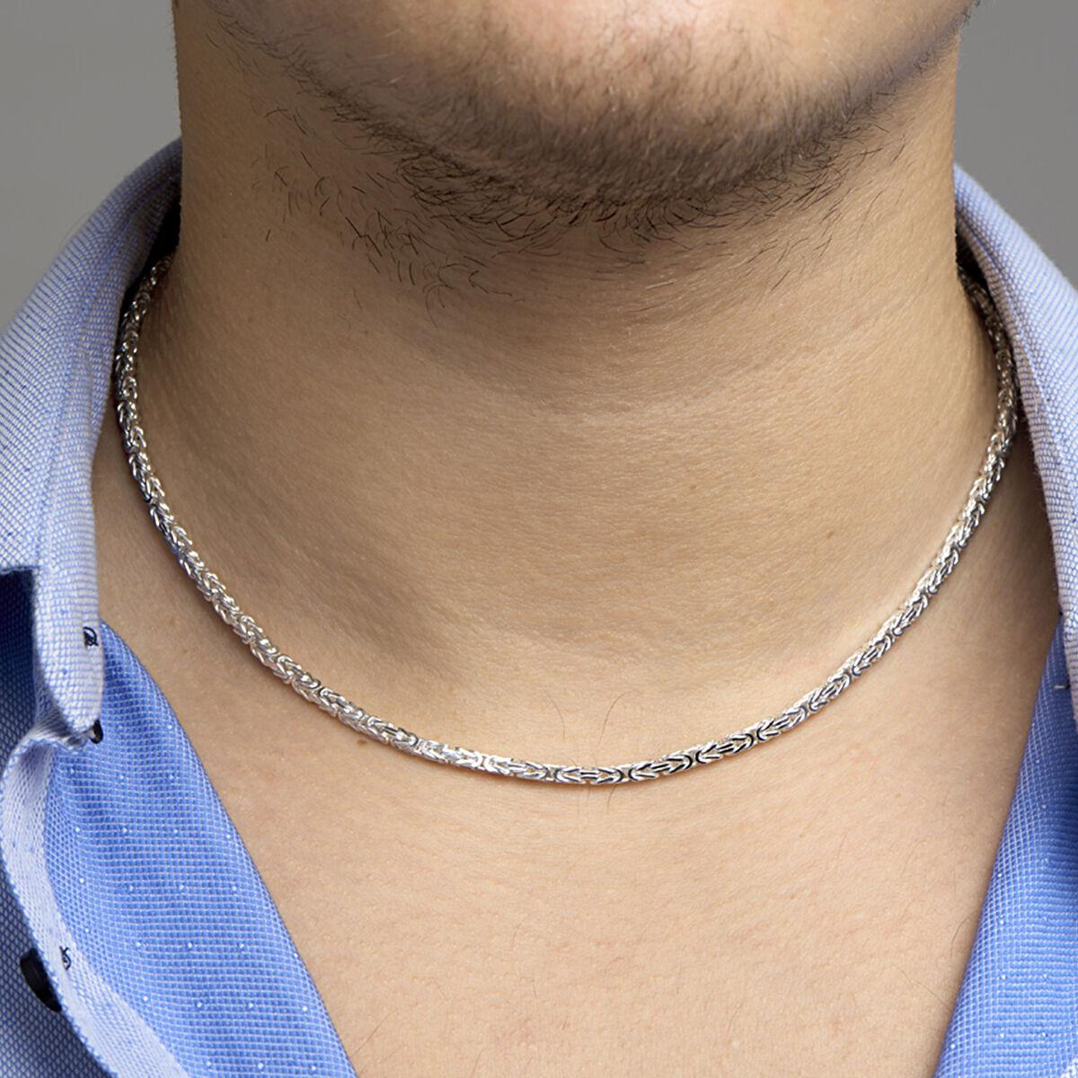 925 Zilveren collier. Konings schakel op een lengte van 55 cm. Met karabijn sluiting.