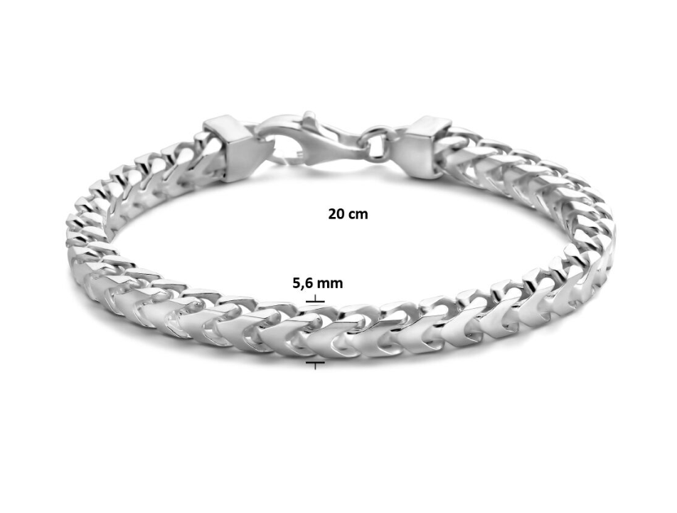 Zilveren armband geslepen Gourmet schakel van 5.6 mm uitgevoerd met een karabijnhaak sluiting.