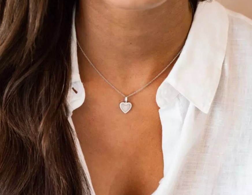 Zilveren hanger in vorm van hart met zirkonia. De hanger kan aan de voorkant gevuld worden met as of moedermelk.