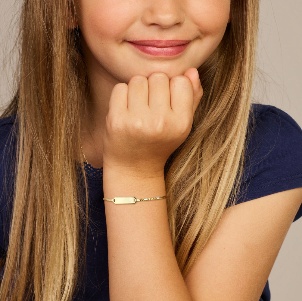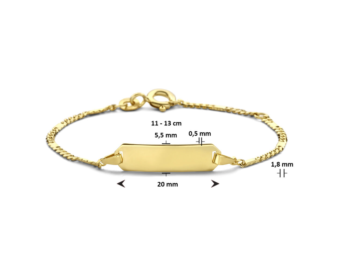 14k Geelgouden graveerarmband met een schakelbreedte van 1.8mm. De graveerplaat heeft een dikte van 0.5mm.