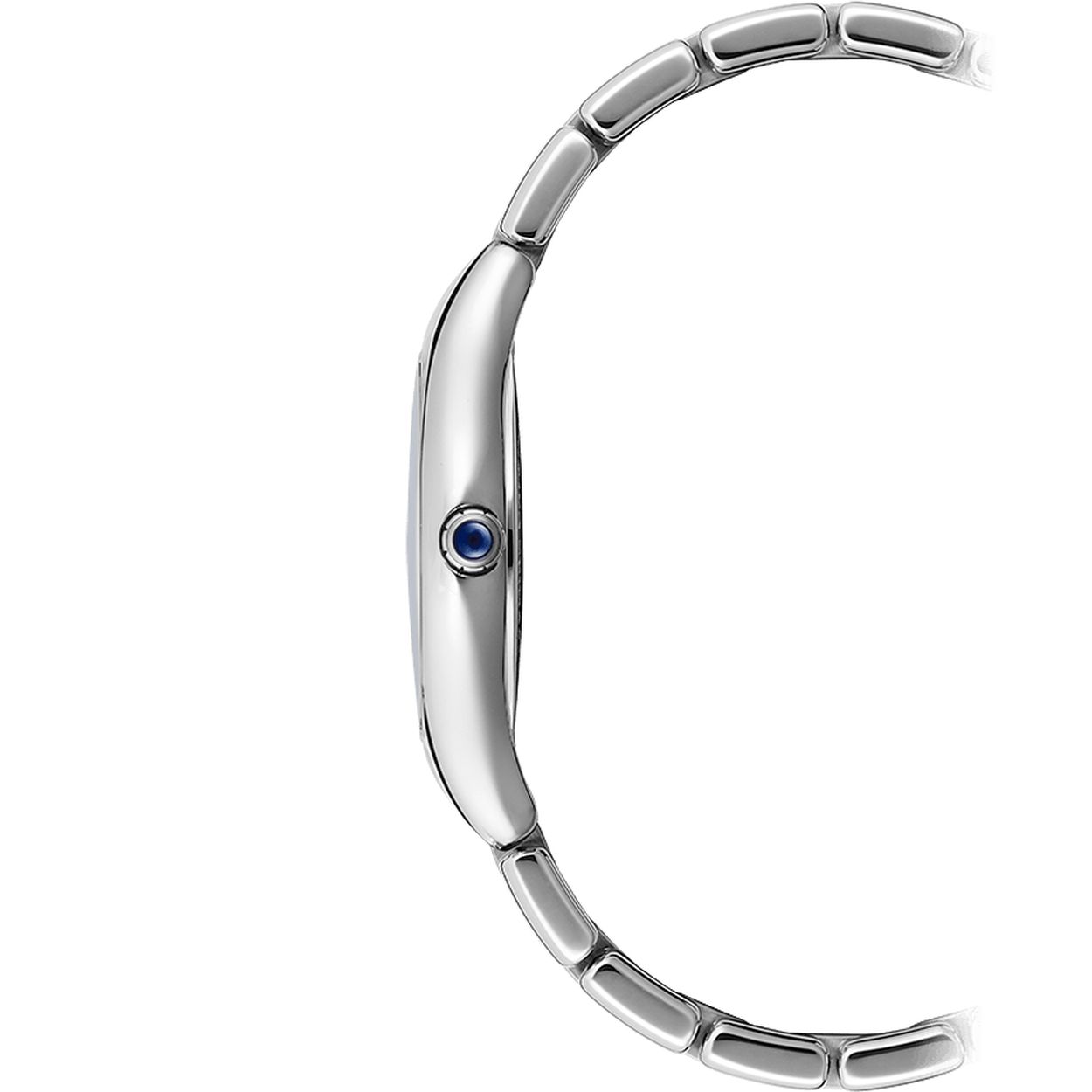 Dit model is volledig gemaakt van roestvrij staal en heeft een ronde kast van 32 mm en een subtiel vervaardigde wijzerplaat van wit parelmoer. De combinatie van gradaties is het resultaat van het kostbare guillochéwerk dat onvergelijkbare effecten van licht en texturen creëert. De finishing touch is een kroon beschut door een laag nachtblauwe lak. De wijzerplaat is versierd met 6 enkelgeslepen diamanten en Romeinse cijfers, als verwijzing naar de eerdere modellen uit de collectie.