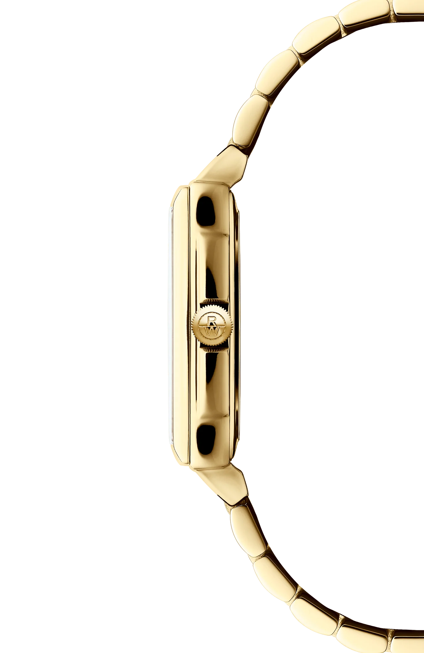 Dit nieuwe quartz model heeft een verfijnde art-deco-uitstraling met een langwerpige rechthoekige wijzerplaat en een slanke kast van 6,25 mm. Dit is ons meest ondiepe kastontwerp tot nu toe, wat een zeer strak profiel aan dit horloge geeft.