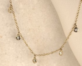 Geel gouden Briljant collier ELEGANTE 5 x 0.03 crt H/Si. Schitterend door zijn eenvoud. Modern met een tijdloze uitstraling.