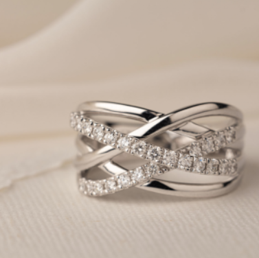 14 Karaat geel- met witgouden dames Crossover ring met briljant. Model Anza Premium. 0.45 crt briljant H/SI.
