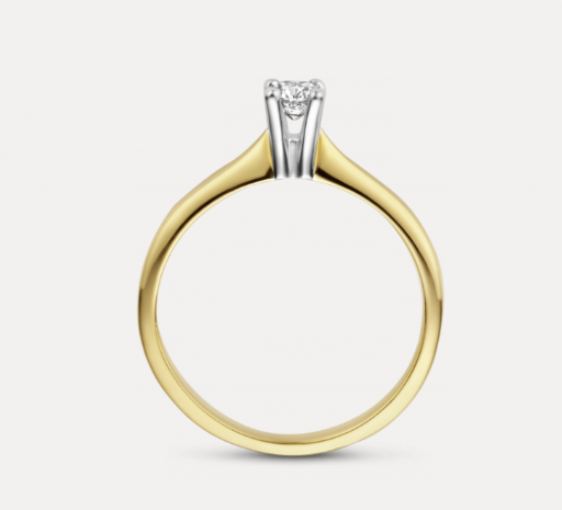 14 KARAAT GEEL- MET WITGOUDEN SOLITAIR RING MET DAARIN 1 BRILJANT VAN 0.25 CARAAT MODEL ETERNAL. Stijlvolle 14 karaats gouden ring, model ETERNAL, bevat een schitterende briljant geslepen diamant in een tulp vormige zetting waarin de briljant extra mooi schittert. Model ETERNAL is geschikt voor elke hand en perfect voor iedere gelegenheid. Fantastisch te combineren met de CLASSICO hanger model 405 en oorsieraden model 951.