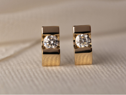 Strak vormgegeven oorsieraden met briljant geslepen diamant waarbij de briljanten een eenheid met de oorsieraden vormen. Uitstekend te combineren met bijpassende ring en oorsieraden.