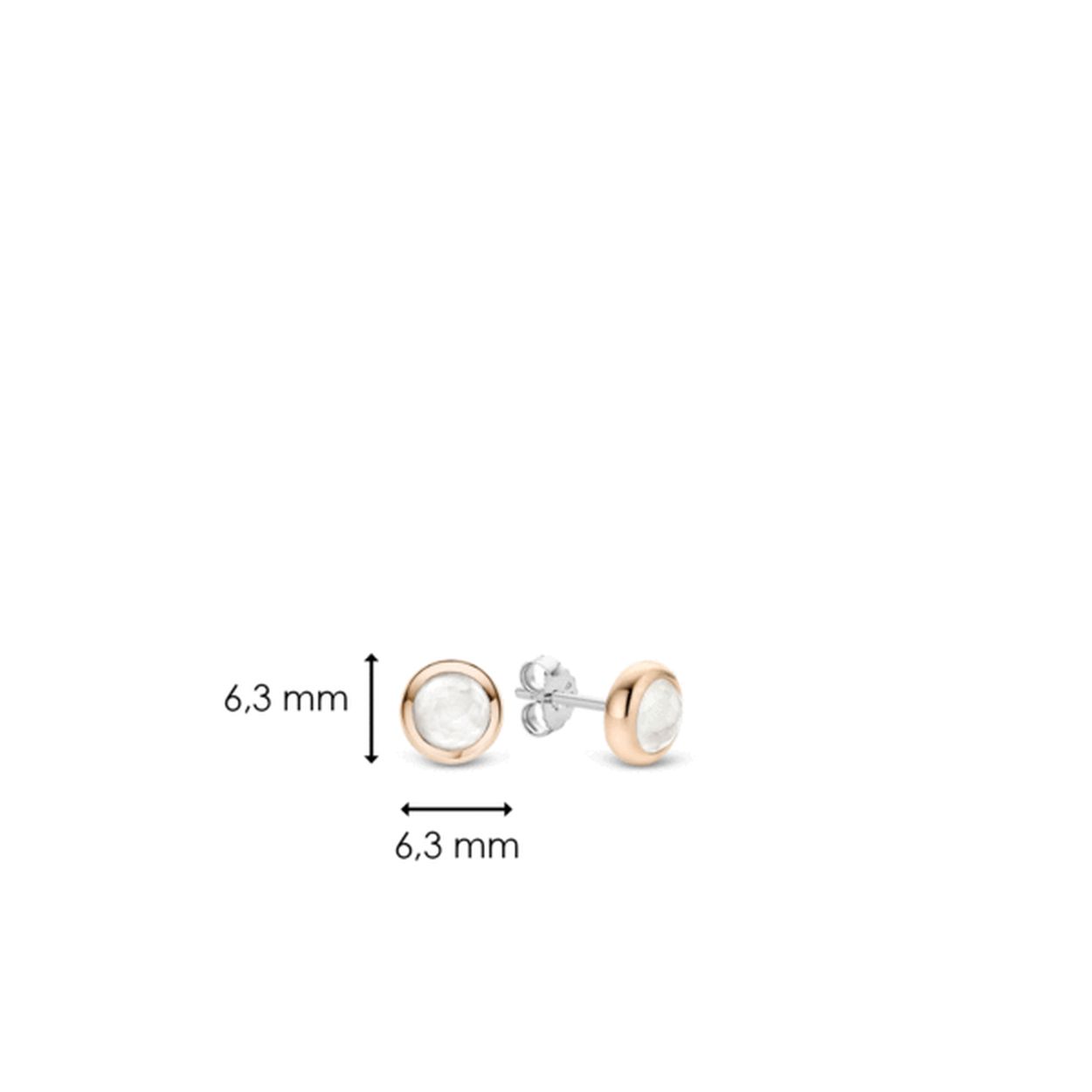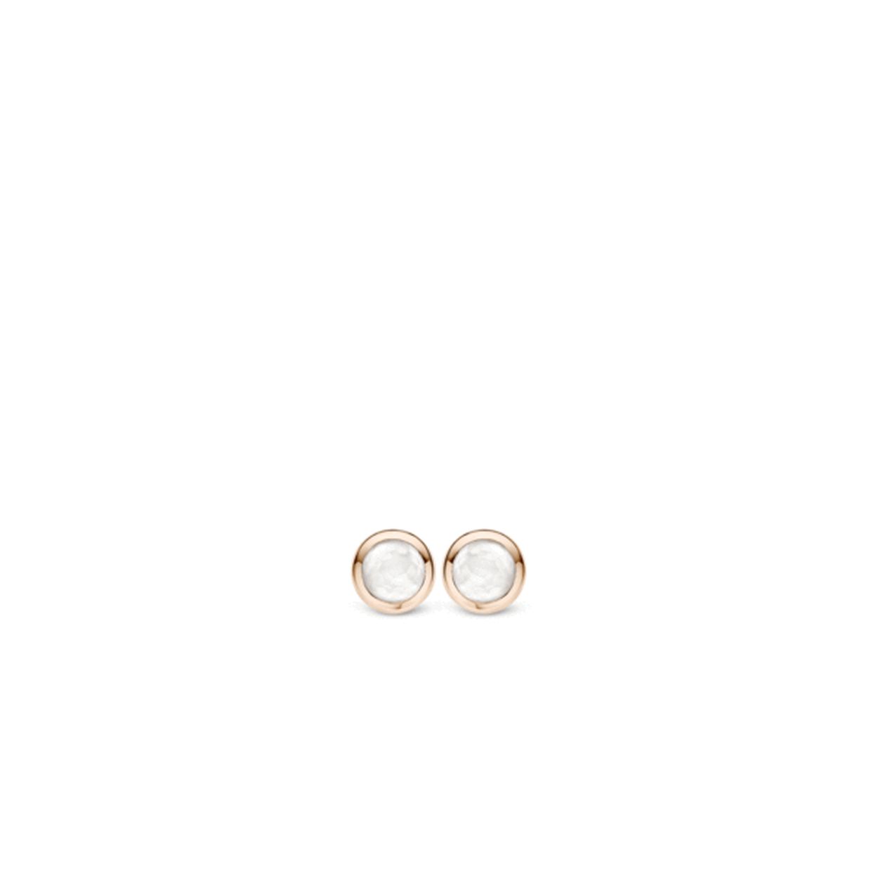 TI SENTO - Milano sterling zilveren oorknopjes. De oorbellen hebben een 18k roségouden plating en zijn gezet met een melkwitte crystal. Deze oorstekers zijn goed te combineren met andere sieraden uit de collectie met dezelfde kleurcombinatie.