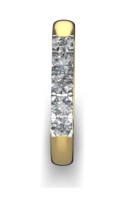 14 Karaat geel gouden Memoire ring met wit gouden zetting model A.S. 11133. Met 5X 0.07 crt briljant G/VVS op maat 54.