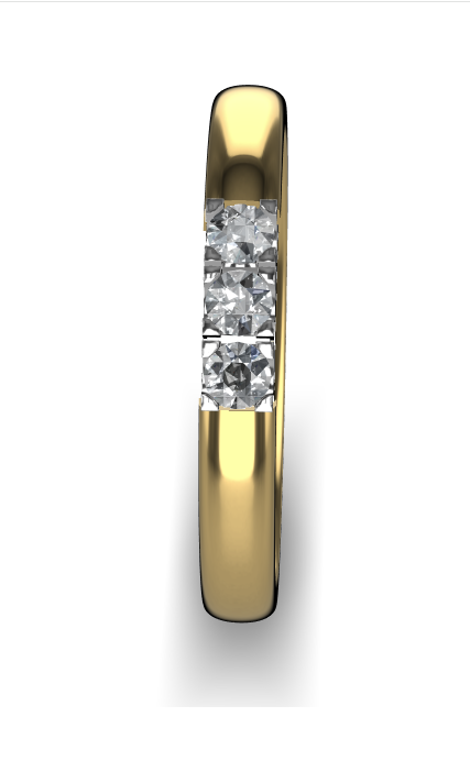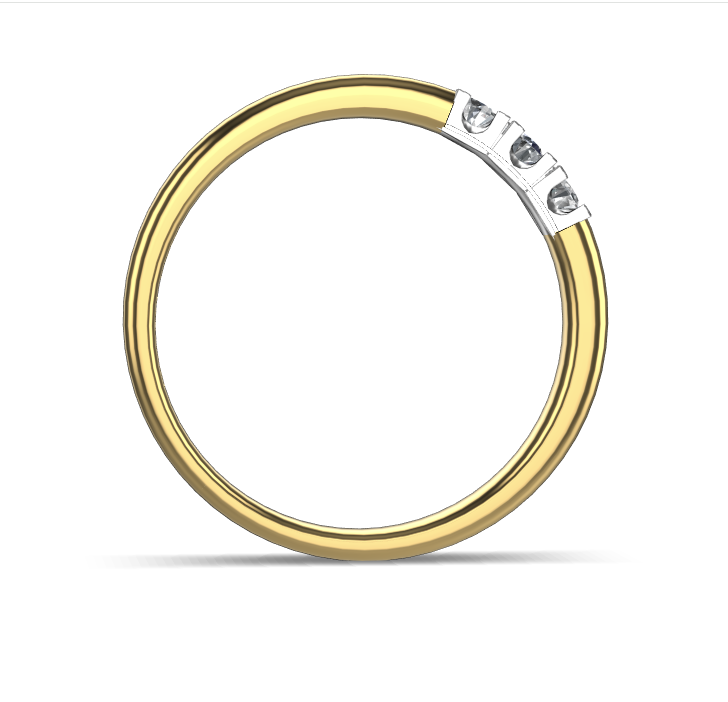 14 Karaat geel gouden Memoire ring met witgouden zetting model A.S. 11133. Met 3X 0.05 crt briljant G/VVS op maat 56.