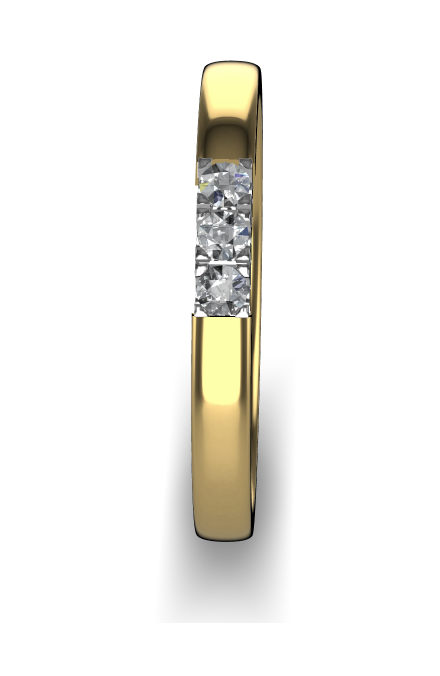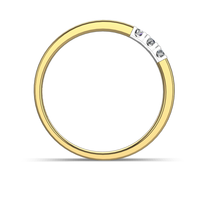 14 Karaat geel gouden Memoire ring met wit gouden zetting model A.S. 11155. Met 3X 0.03 crt briljant G/VVS op maat 53.