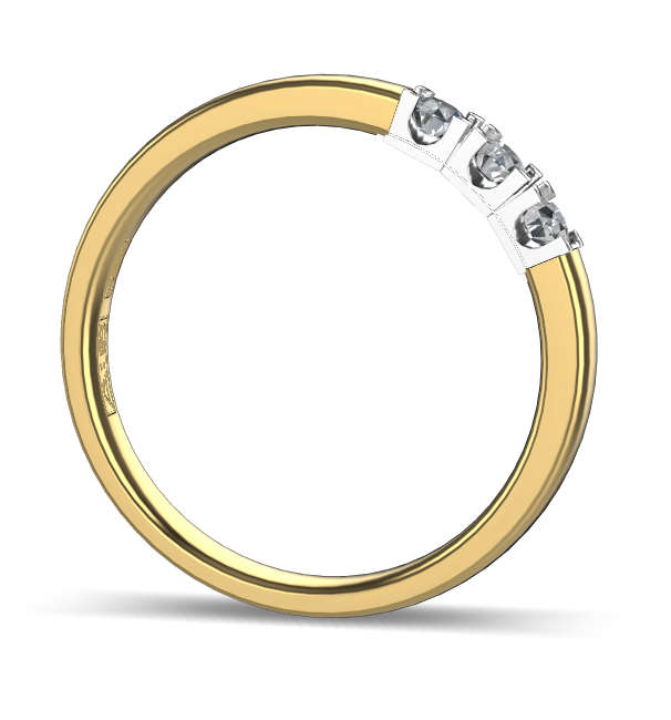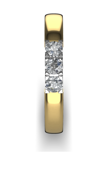 14 Karaat geel gouden Memoire ring met wit gouden zetting model A.S. 11155. Met 3X 0.07 crt briljant G/VVS op maat 53.