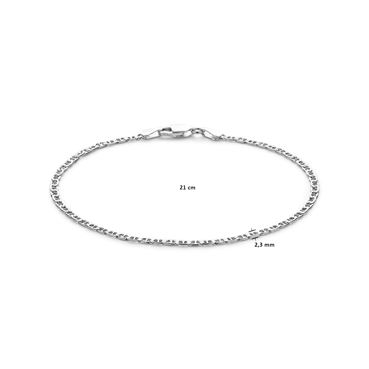 925 Zilveren lengteartikel met een schakelbreedte van 2.3mm. Uitgevoerd met een karabijn sluiting.