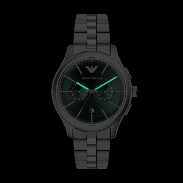 Armani  heren polshorloge staal met stalen band uit de Dario collectie. 5 ATM waterdicht.