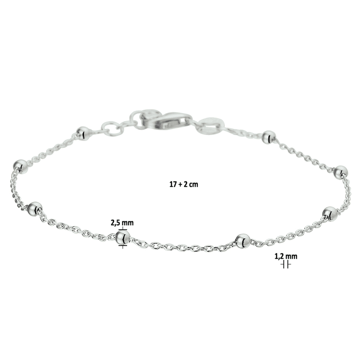 Beschrijving: Fijn gerhodineerd zilveren 1.2mm anker collier met een lengte van 40cm met een extensie van 4cm uitgevoerd met bolletjes van 2.5mm en stevige karabijn sluiting. Tip: Combineer deze armband met een bijpassend collier uit onze collectie en creeer zo een subtiele set.
