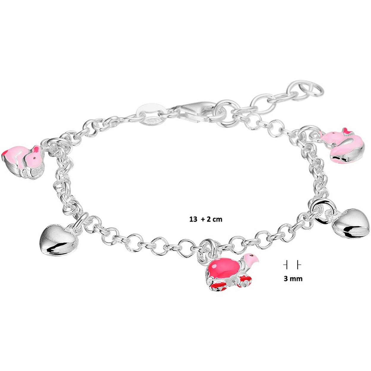 Zilveren armband met hartjes en dieren