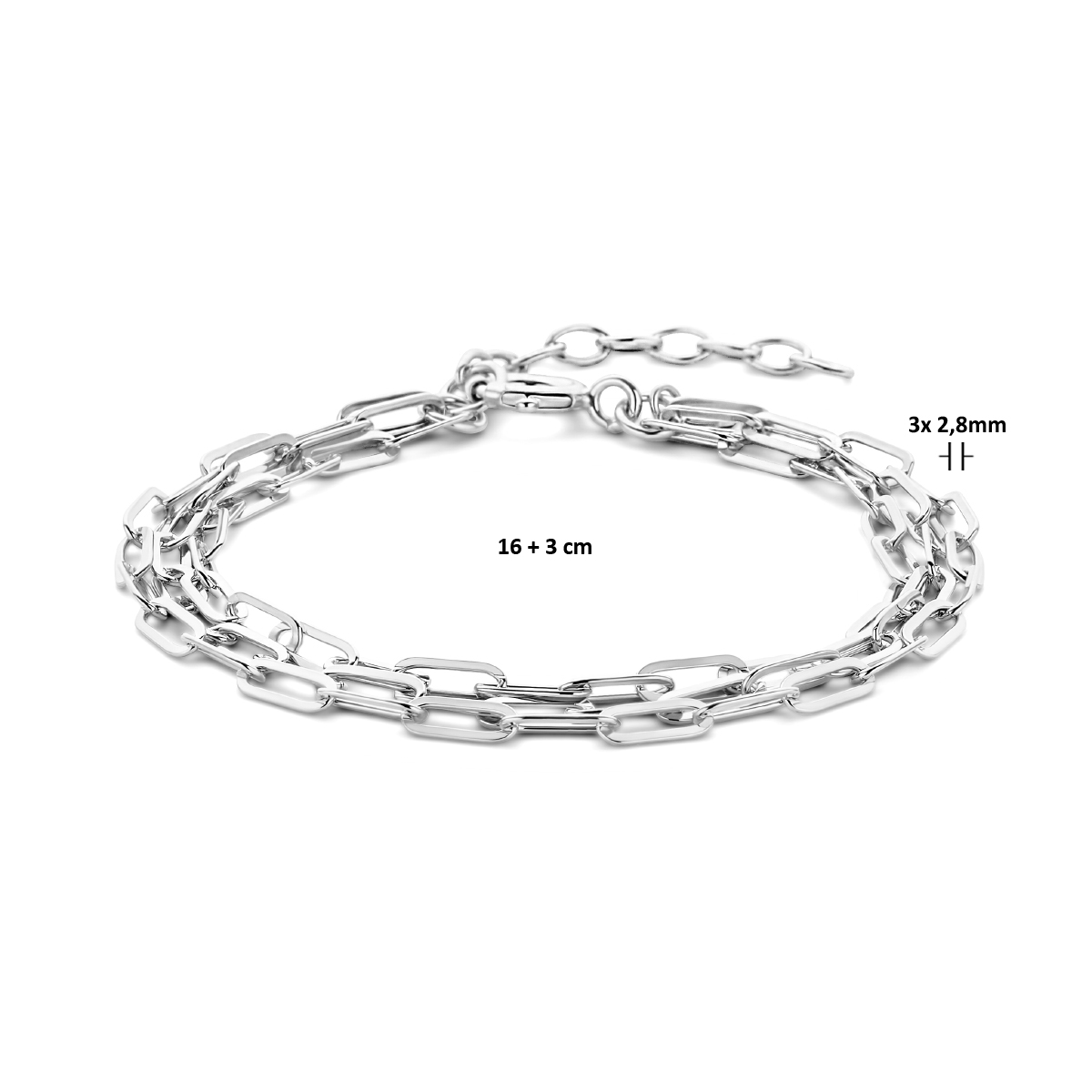 Gerhodineerd 925 zilveren armband met een draaglengte van 16cm en een exensie van 3cm. De armband heeft een schakelbreedte van 2.8mm.