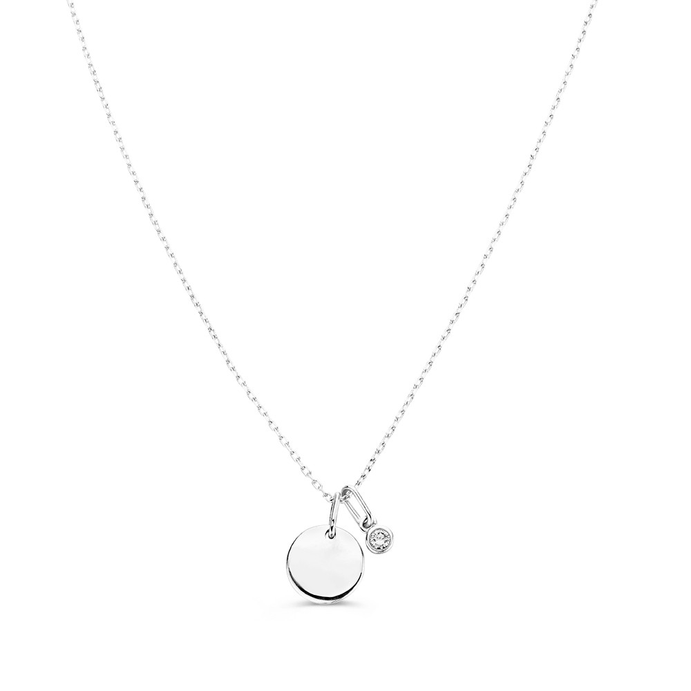 Onze schitterende collier met graveerplaatje in witgoud, voorzien van een betoverende witte lab grown diamant van 0,05 crt., is de perfecte manier om een bijzondere mijlpaal in het leven te vieren. De fonkelende diamant, gezet in een witgouden kast, straalt pure elegantie uit en symboliseert dit bijzondere moment.