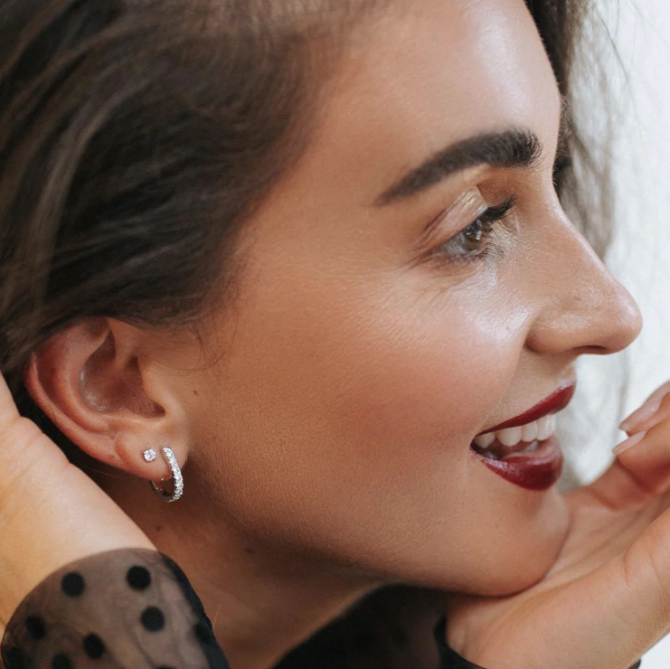 18 Karaat wit gouden Aurore oorstekers met 0.20 crt Lab-Grown Diamonds. Model Olivia.