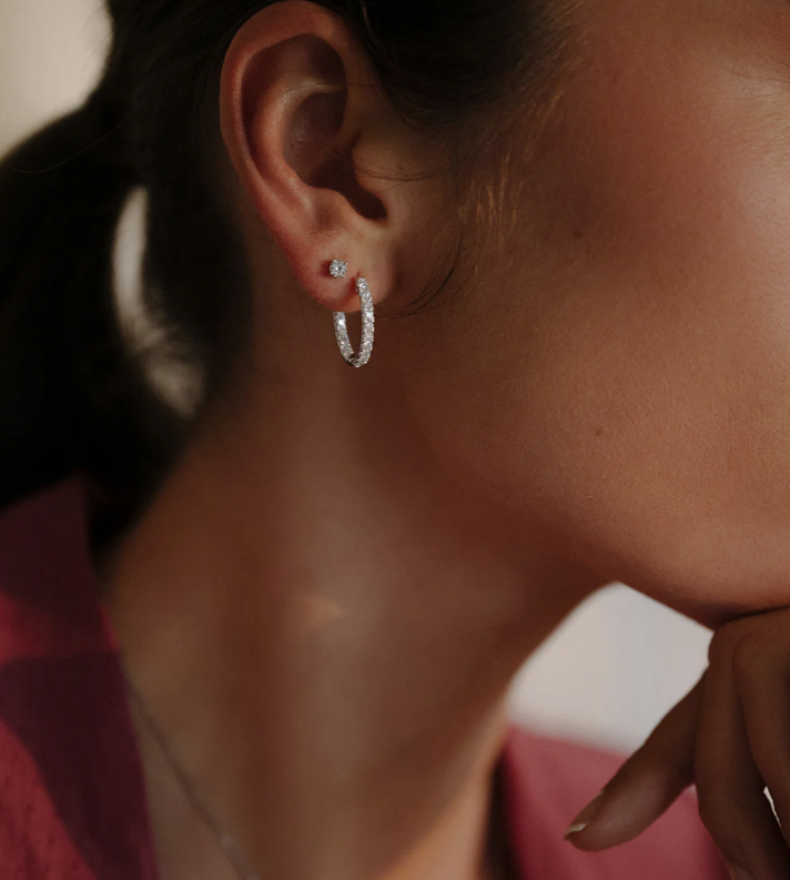 Ontmoet Lauren,  een prachtige en luxe serie oorringen met diamanten in fonkelende pavézetting. De Lauren oorbellen hebben een elegante en tijdloze uitstraling. Voor een extra wauw-effect zijn ze niet alleen aan de voorzijde, maar ook aan de binnenkant gezet met schitterend diamant. Kies zelf de gewenste steengrootte van jouw diamanten. De stijlvolle Lauren oorringen zijn in verschillende maten beschikbaar.
