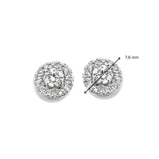 Emma is een serie schitterende sieraden met entourage zetting. De ronde middensteen (briljant geslepen) wordt hierbij omringd door kleinere briljanten. Kies zelf de gewenste steengrootte van jouw diamant. De Emma oorstekers zijn in verschillende maten beschikbaar.