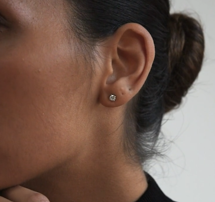 18 Karaat wit gouden Aurore oorstekers met 0.50 crt Lab-Grown Diamonds. Model Olivia.