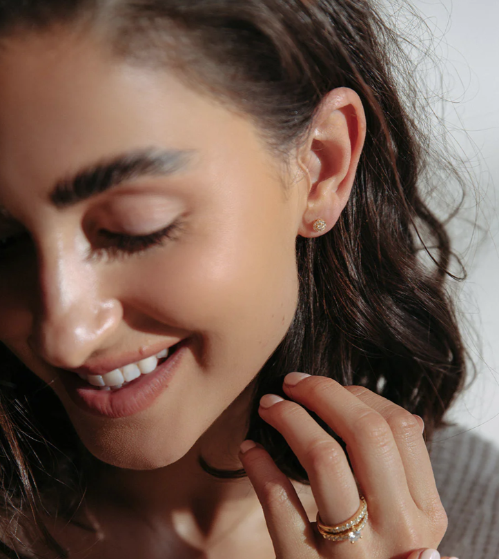 18 Karaat witgouden Aurore oorstekers met 0.20 crt Lab-Grown Diamonds. Model Emma.