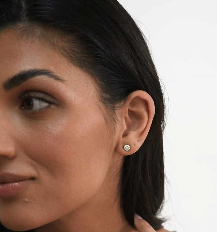 Emma is een serie schitterende sieraden met entourage zetting. De ronde middensteen (briljant geslepen) wordt hierbij omringd door kleinere briljanten. Kies zelf de gewenste steengrootte van jouw diamant. De Emma oorstekers zijn in verschillende maten beschikbaar.