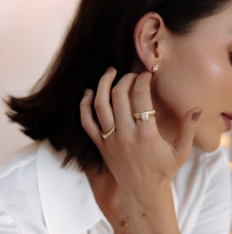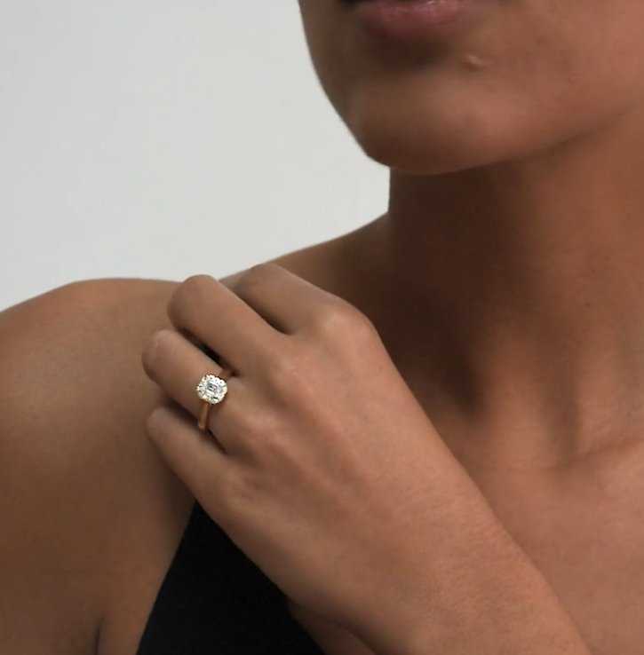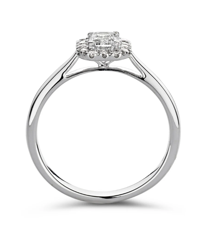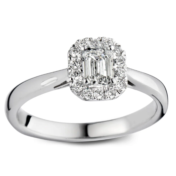 Ring Ivy is dankzij de prachtige emerald geslepen middensteen een echte showstopper! De opvallende middensteen wordt omringd door fijne briljanten voor een extra luxe uitstraling. De ring heeft een licht verhoogde zetting, waardoor hij perfect gecombineerd kan worden met een gladde of diamanten rijring. Combineer haar bijvoorbeeld met de verfijnde Millie ring.