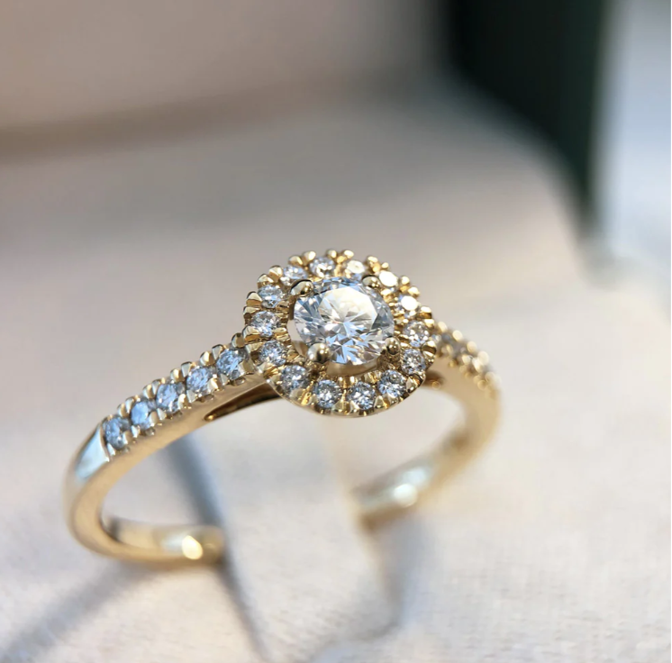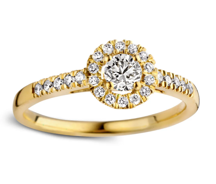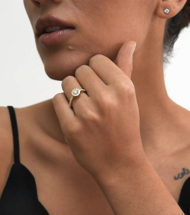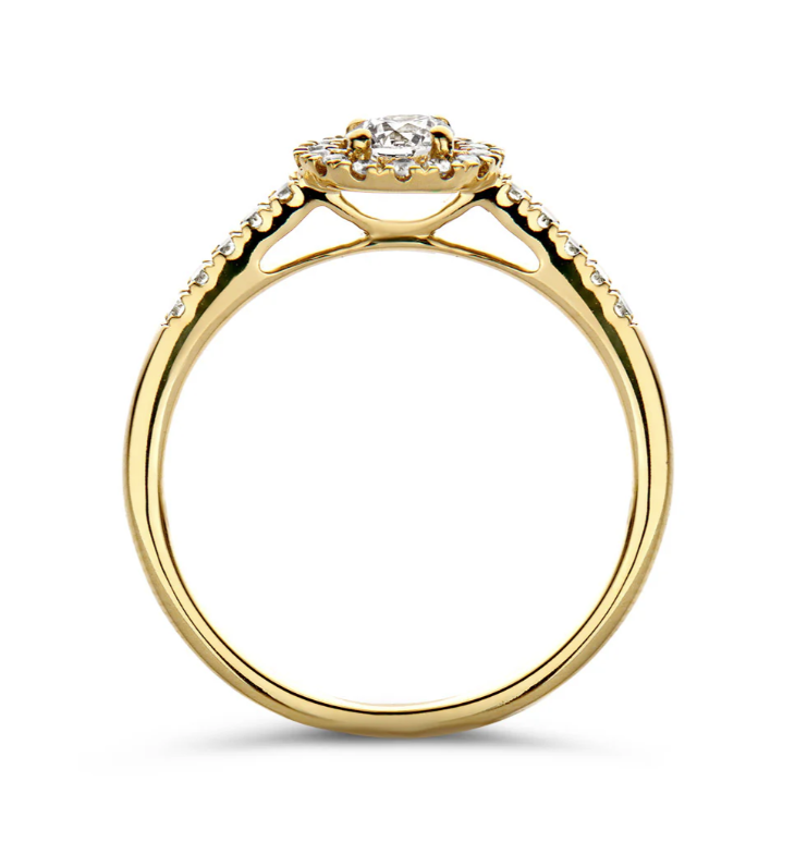 18 Karaat geel gouden Aurore ring met 0.50 crt Lab-Grown Diamonds. Model Emma Royal.
