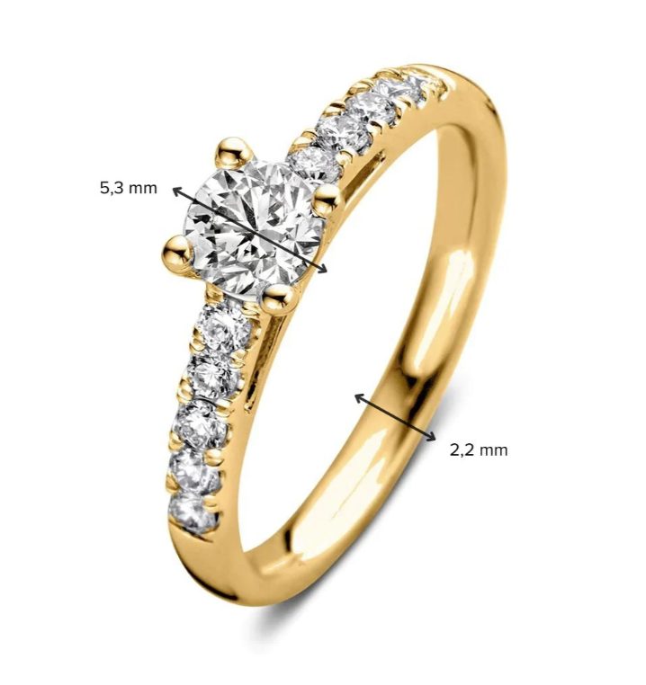 18 Karaat geel gouden Aurore ring met 0.80 crt Lab-Grown Diamonds. Model Mary.