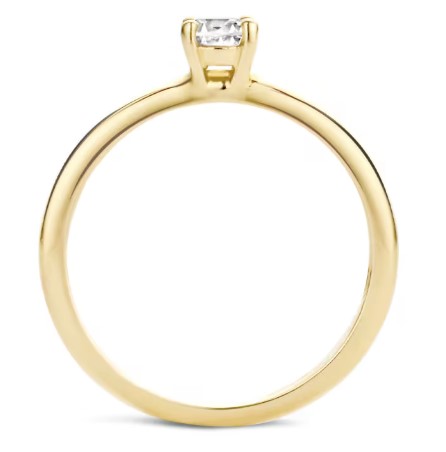 Een glinsterende zirkonia in een chatonzetting siert deze gladgepolijste ring van 14k geelgoud. De band is 2 mm breed en de zirkonia heeft een doorsnede van 4,5 mm. Prachtig te combineren met andere aanschuifringen uit onze collectie.