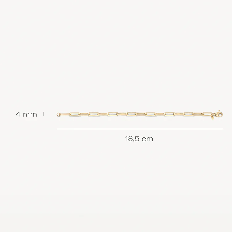 De 14 karaats geel gouden closed forever armband is opgebouwd uit ovale schakels. De 18.5 centimeter lange armband sluit met een karabijnslot. De schakels hebben een diameter van 4,3 millimeter. Door de tijdloze uitstraling van het design vormt dit sieraad met ieder item uit onze collectie een perfecte match.