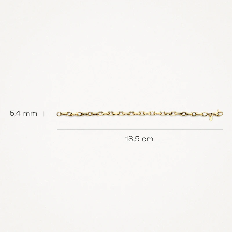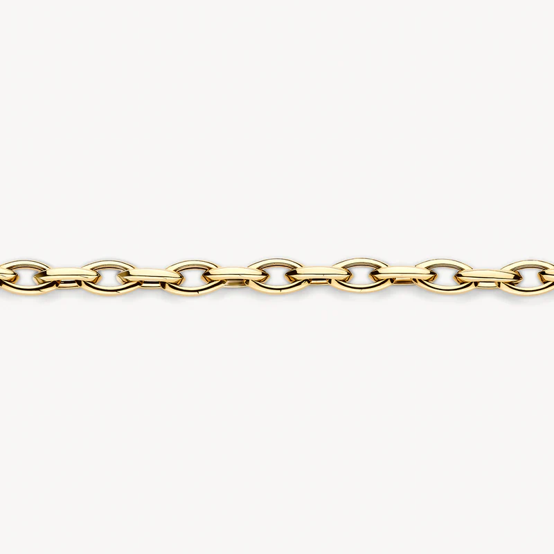 Ontdek deze schitterende 14k geelgouden schakelarmband van 18.5 cm. De jasseron schakels, met een robuuste materiaaldikte van 1.8 mm, creëren een tijdloze uitstraling. Deze armband voegt een klassiek, maar toch modern accent toe aan jouw look. Perfect om te dragen of cadeau te geven!