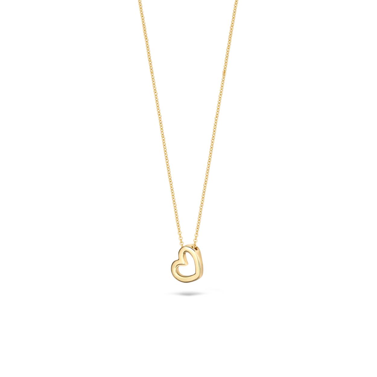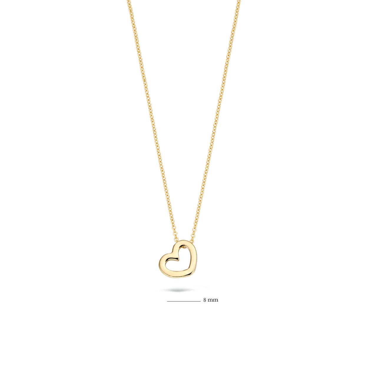 Dit stijlvolle collier van 14k geelgoud heeft een hartvormige hanger die door de bevestiging altijd plat op de hals ligt. Het collier heeft een lengte van 42 cm en de hanger een grootte van 7 mm bij 6 mm. Mooi op zichzelf maar ook goed te combineren met andere sieraden uit onze collectie.