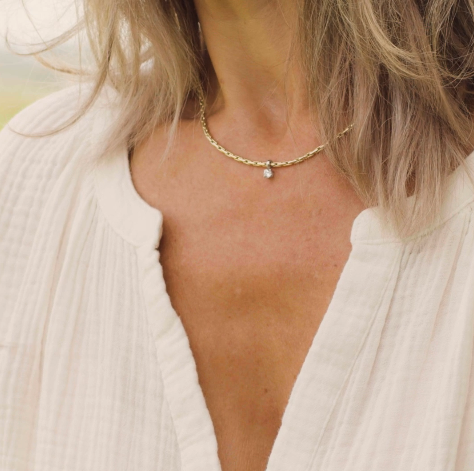 Dit elegante collier heeft fantasieschakels in 14k wit- en geelgoud en een sprankelende hanger met zirkonia. Het heeft een lengte van 42 cm en de hanger een doorsnede van 2,4 mm. Heel mooi op zichzelf maar ook goed te combineren met andere sieraden uit onze collectie.