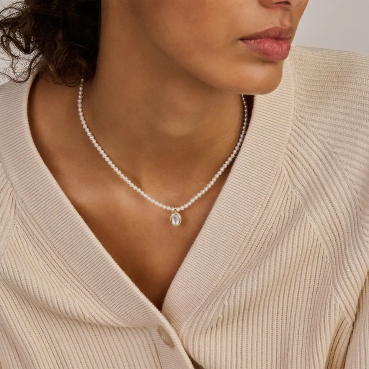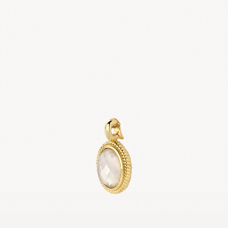 Deze 14k geelgouden hanger met geslepen parelmoer en bergkristal in gladomzetting en afgewerkt met kabelmotief is een echte eyecatcher. Combineer de hanger met een gouden ketting en mix en match naar wens met andere sieraden uit onze collectie.