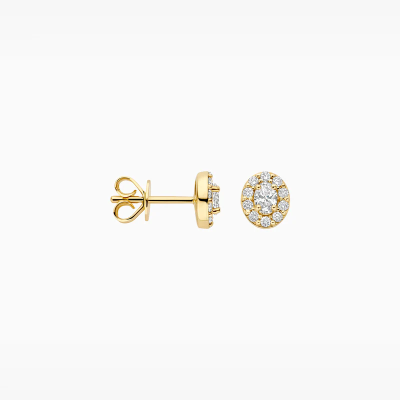 Jouw look compleet maken? Deze elegante oorknoppen van 14k geelgoud schitteren met lab grown diamanten. Elke oorsteker toont een centrale lab grown diamant, omringd door kleinere diamanten in een verfijnde entourage zetting. Dit ontwerp garandeert een tijdloze uitstraling en optimale sprankeling.