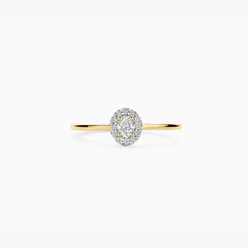 Meerdere lab-diamonds in entourage-zetting sieren deze stijlvolle glinsterende ring. Het totale karaatgewicht van de diamanten is 0,20, de doorsnede van de ring is 1 mm. Prachtig op zichzelf of gecombineerd met andere sieraden met lab-diamonds uit onze collectie.