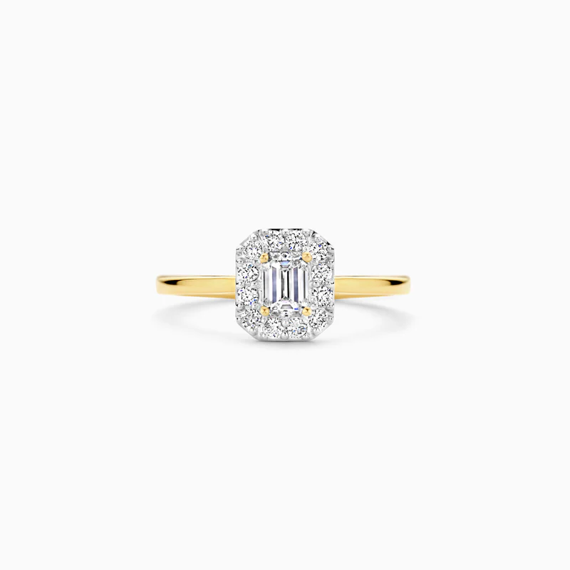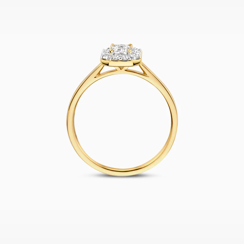 Gemaakt van gecertificeerd gerecycled goud met een lab grown diamant. Deze 14k geelgouden Lab Diamonds ring is uitgevoerd in glanzend gepolijst goud en voorzien van emerald -en briljant geslepen lab grown diamanten van een gewicht van totaal 0.64ct en een doorsnede van 8,6 mm. Wanneer je de ring op zichzelf draagt, geeft de ring een elegante en vrouwelijke uitstraling.