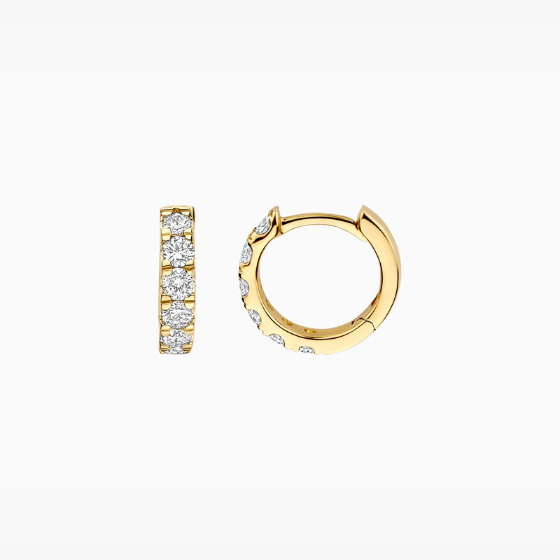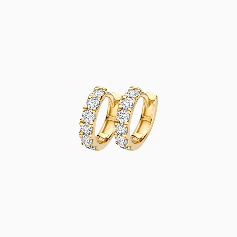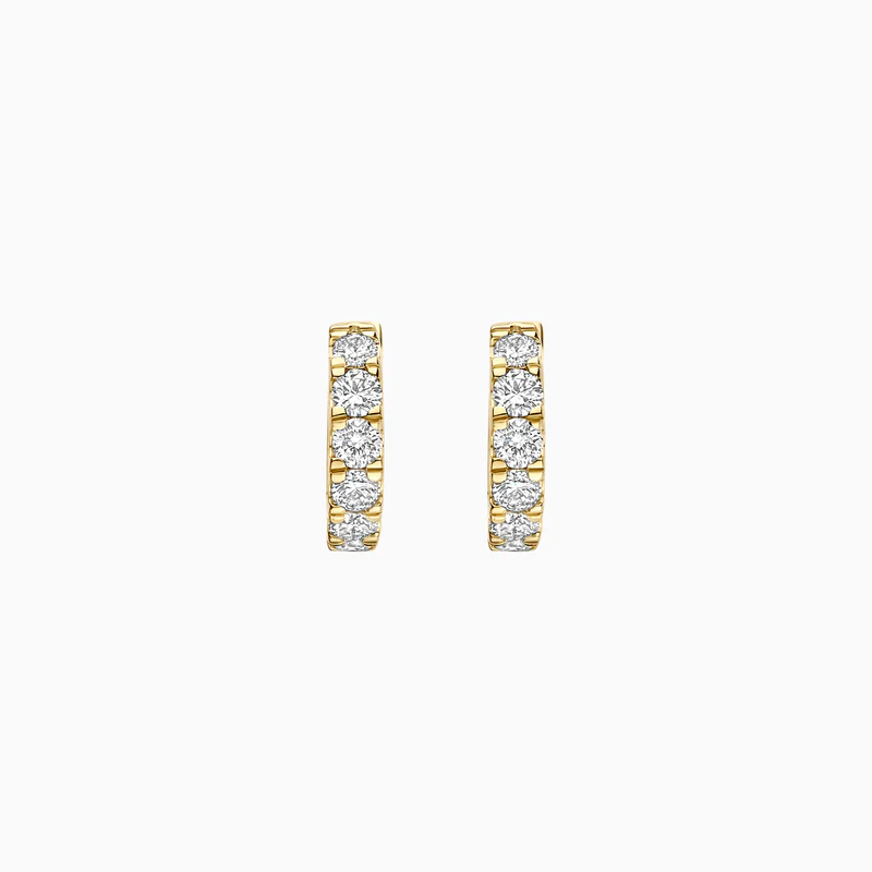 Deze 14k geelgouden oorringen, gezet met Lab Grown Diamanten, tillen jouw stijl naar een hoger niveau. Je ziet sprankelende diamanten in een verfijnde pavé-zetting. Elke oorbel, met een breedte van 2.7 mm en 0.29 karaat aan diamant, omarmt je oor. Een essentiële toevoeging aan je collectie voor een luxe uitstraling.