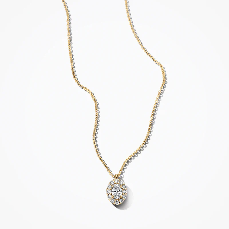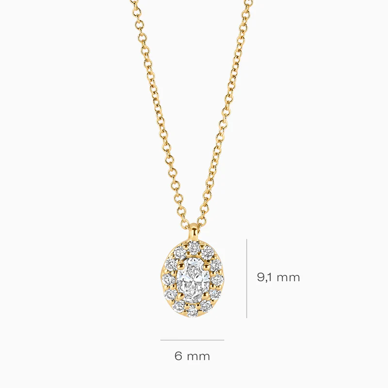 Ontdek dit prachtige collier, vervaardigd uit 14k geelgoud met een elegante 42 cm anker schakelketting. De hanger (6 x 9.1 mm) trekt de aandacht met een schitterende entourage zetting. Een centrale lab grown diamant van wordt perfect omringd door extra kleinere lab grown diamanten. Een tijdloos sieraad dat jouw look compleet maakt.