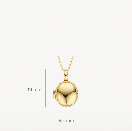 Dit klassieke, ovalen 14k geelgouden medaillon heeft een speelse kabeldecoratie. Aan de binnenzijde zit een zilveren plaatje waar je een naam of datum in kunt graveren. Het medaillon heeft een lengte van 13 mm en een breedte van 8.6 mm. Een prachtig geschenk voor een moeder, geliefde of dierbare vriendin.