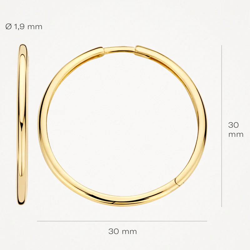 Deze klassieke, ronde, gladde oorringen van 14k geelgoud zijn een absolute must-have. Ze hebben een totale doorsnede van 30 mm en zijn voorzien van een kliksluiting. Mix en match met andere (oor)sieraden uit onze collectie.