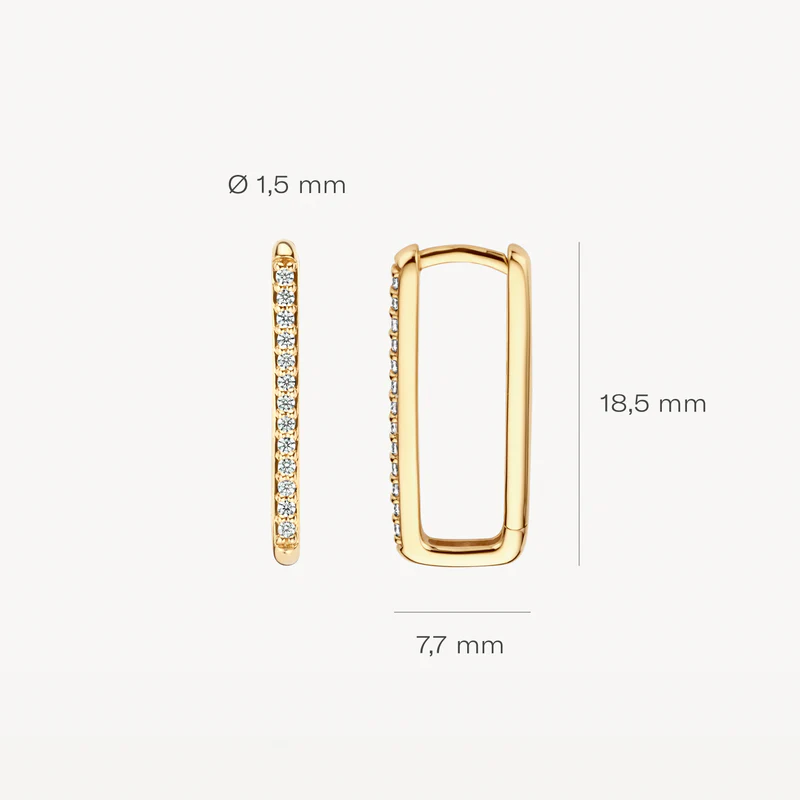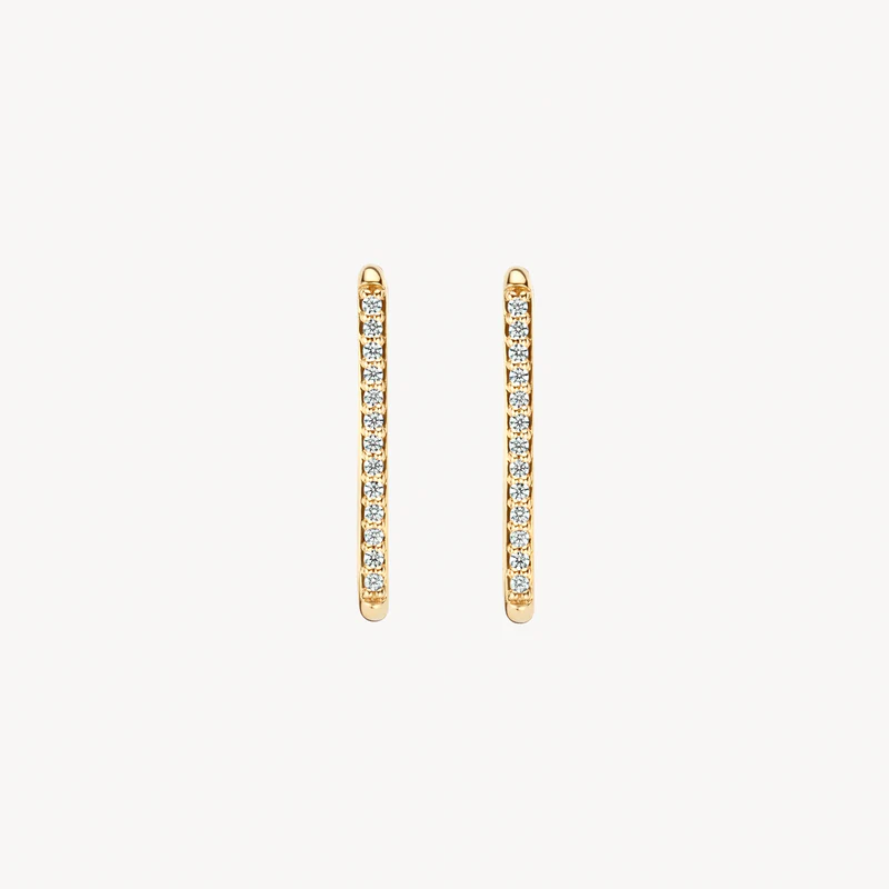 Met deze oorringen van 14k geelgoud met zirkonia laat je zien dat strak design en klassieke elegantie hand in hand kunnen gaan. De oorringen zijn 18,5 mm hoog en hebben een kliksluiting. Ze matchen prachtig met andere (oor)sieraden uit onze collectie.