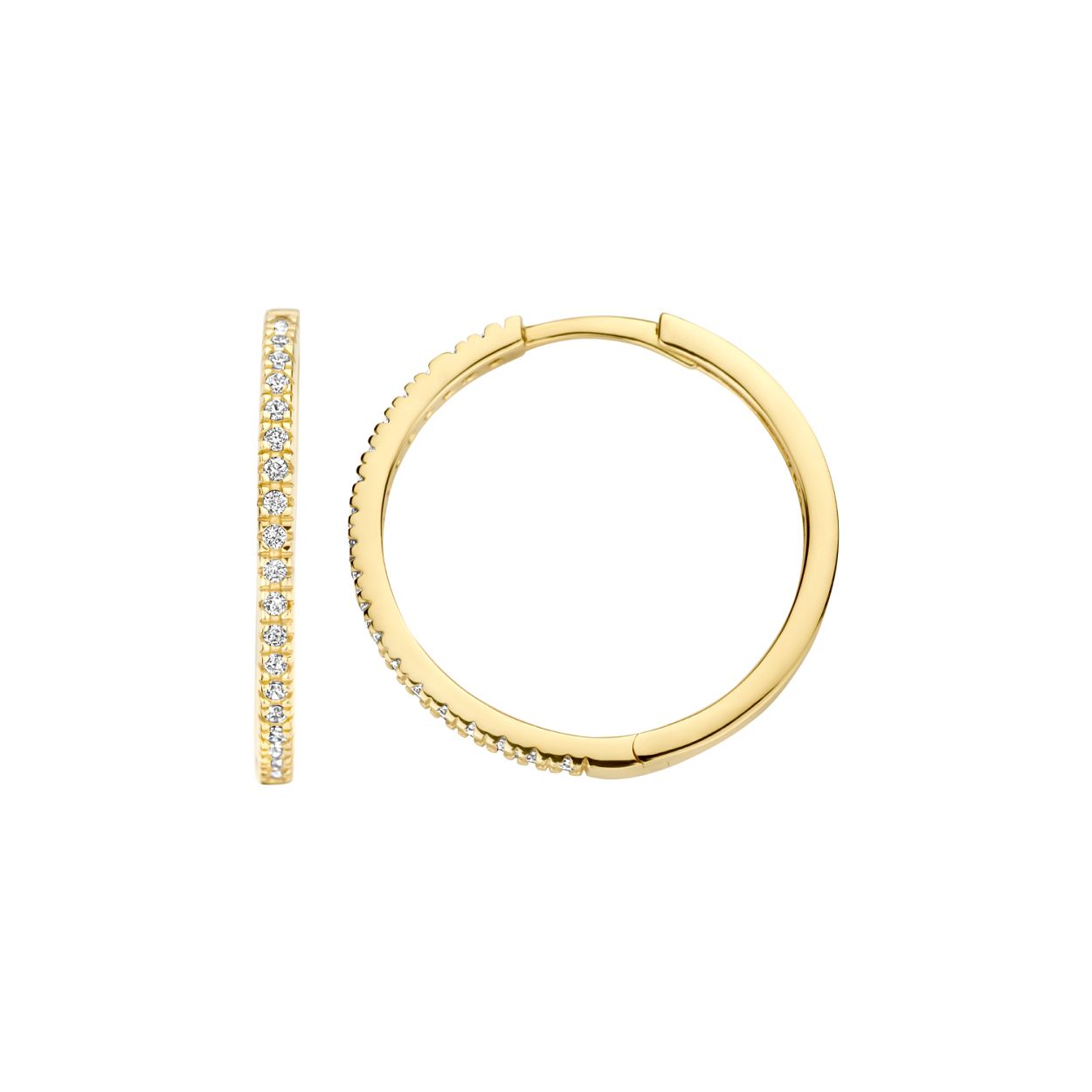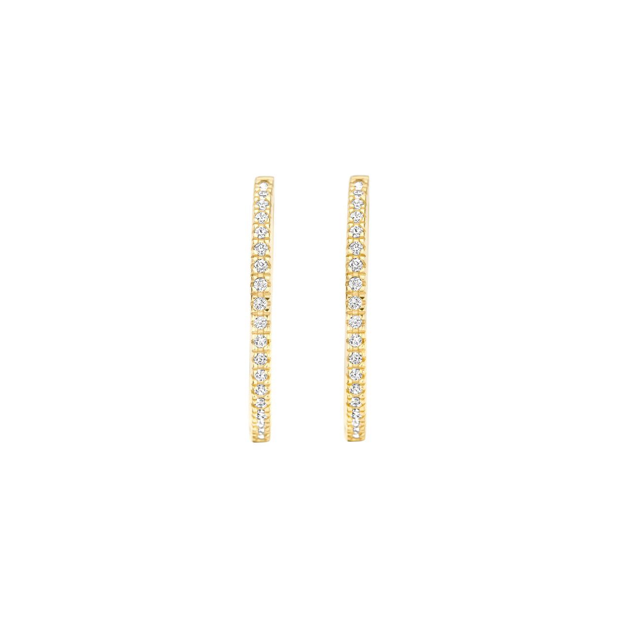 Deze stijlvolle 14k geelgouden oorringen zijn bezet met schitterende zirkonia’s in pavé-zetting. Ze hebben een lengte van 20 mm en zijn voorzien van een kliksluiting. De oorringen zijn prachtig op zichzelf, maar ook mooi te combineren.