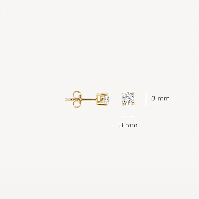 De witte zirkonia’s met een doorsnede van 3 mm in 14k geelgouden chaton zetting geven een mooie sprankeling aan deze elegante oorknoppen. De subtiele knopjes gaan heel goed samen met andere (oor)sieraden uit onze collectie.