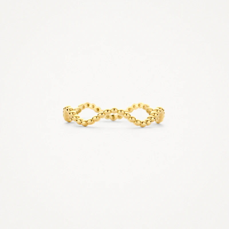 Het golvende ontwerp met bolletjes maakt een echte eyecatcher van deze 14k geelgouden ring. De band heeft een doorsnede van 1,3 mm. De ring is opvallend genoeg om alleen te dragen maar ook heel mooi te matchen met andere (aanschuif)ringen uit onze collectie.