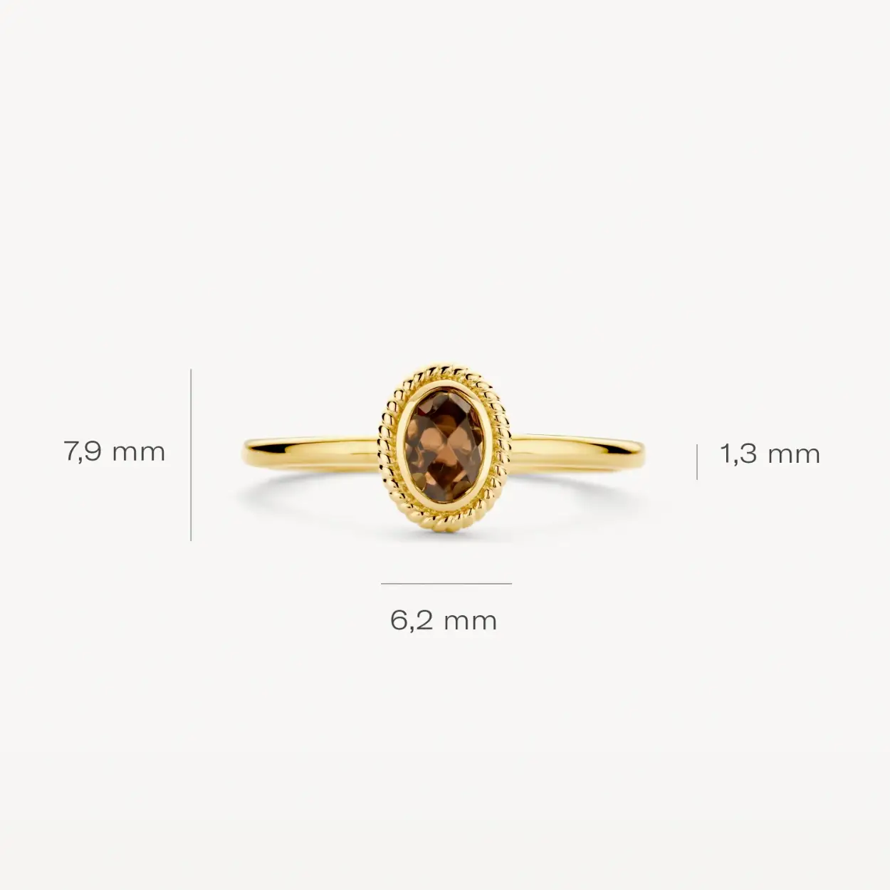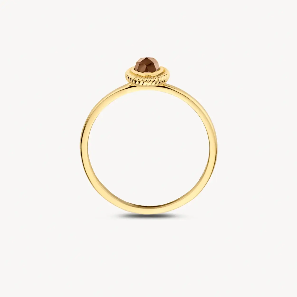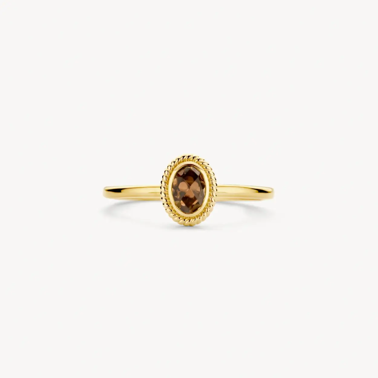De parelmoer en pure kwarts in deze 14k geelgouden ring is gezet in een gladomzetting versierd met een speels kabelmotief. De band heeft een doorsnede van 1,3 mm en is matcht prachtig met ander (aanschuif)ringen uit onze collectie.